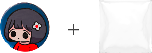 缶バッジと袋を同梱してお届けします。
